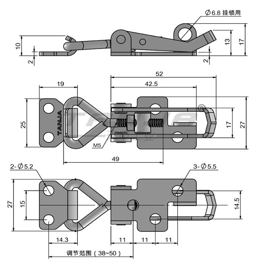 焊接可調(diào)搭扣,我們從字面理解是可以焊接安裝,而且是可以調(diào)節(jié)的一種搭扣,搭扣鎖。