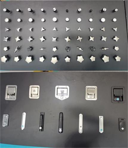 此次坦嘉攜帶多款自主研發(fā)的專利產(chǎn)品:不銹鋼搭扣、鉸鏈、門配、旋鈕、把手及各種操作件等產(chǎn)品盛裝出席。