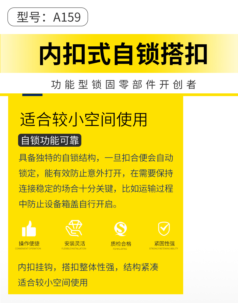 · 操作便捷:開合操作相對簡單,只需簡單的按壓或撥動動作即可完成扣合與解鎖,可提高工作效率,適合頻繁開合的應用場景。