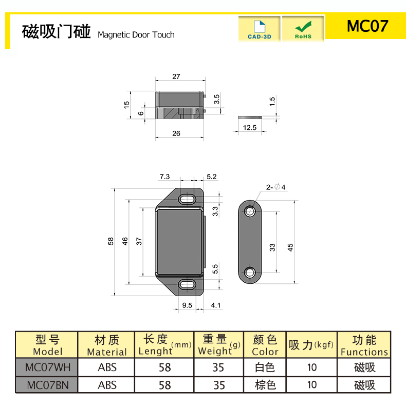 ABS 34.31 58 白色 磁吸