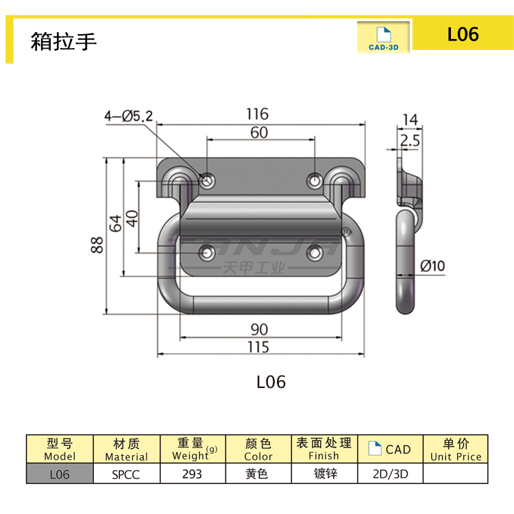 SPCC 253.71 116 黃色 箱拉手