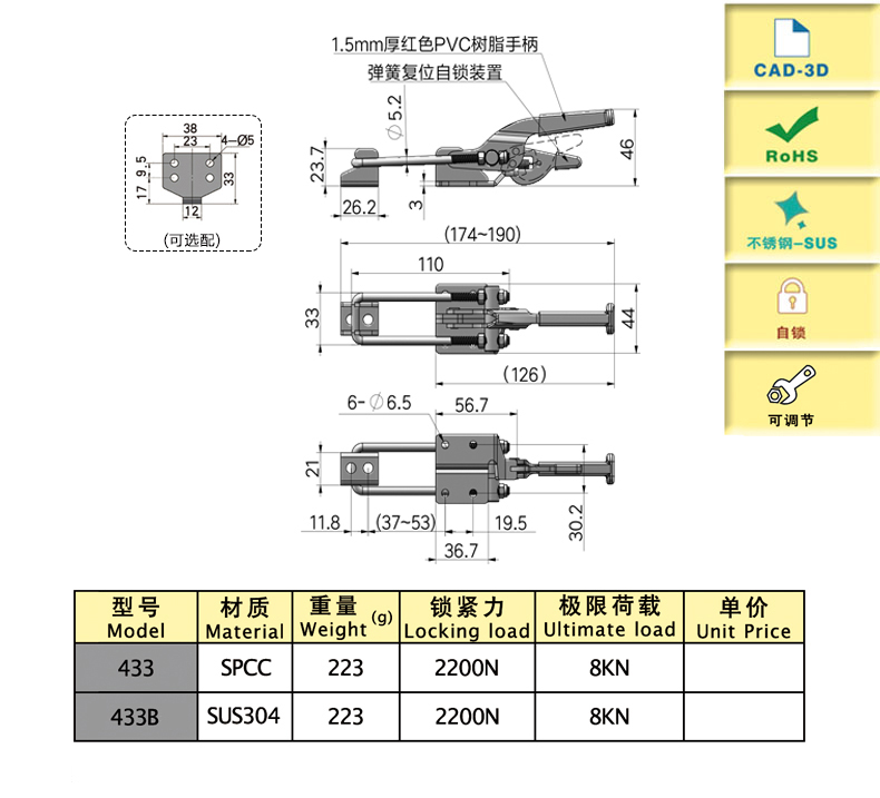 200 SPCC 250 2200 8000 可調(diào)節(jié),自鎖