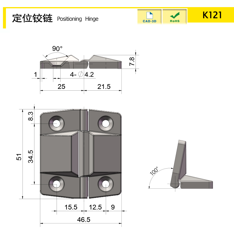 最大開(kāi)合角度190°,定位角度100°。