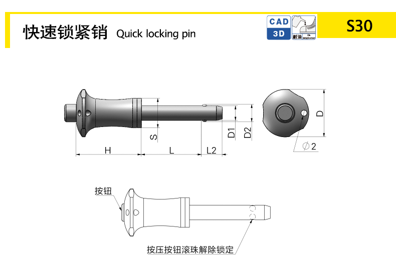 按壓按鈕,解鎖滾珠,松開按鈕重新鎖定。