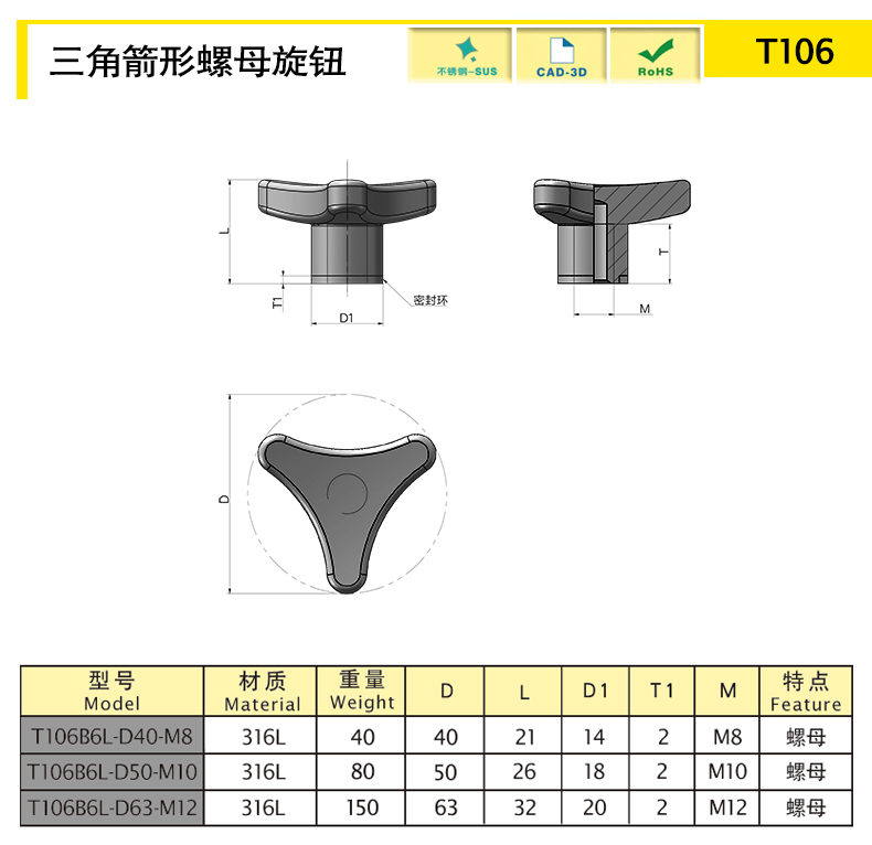 三角箭形螺母旋鈕