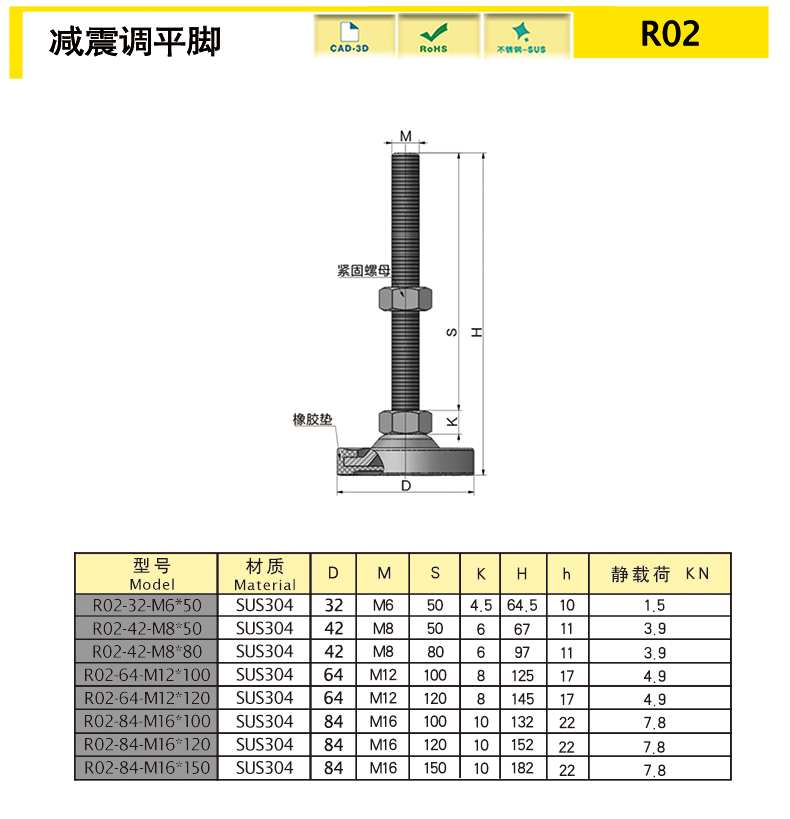 | R02-84-M16-100 | SUS304 | 84 | M16 | 100 | 10 | 132 | 22 | 344.31 | 7.8 | 下載 | ||||
