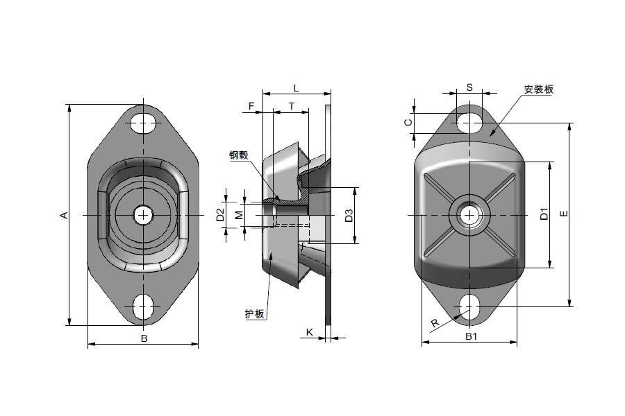 內(nèi)部天然橡膠與金屬件相膠合,減震效果更好。
