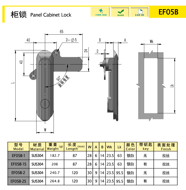 結(jié)構(gòu)功能:手柄向上打開,帶動鎖片90°旋轉(zhuǎn)實現(xiàn)開啟。