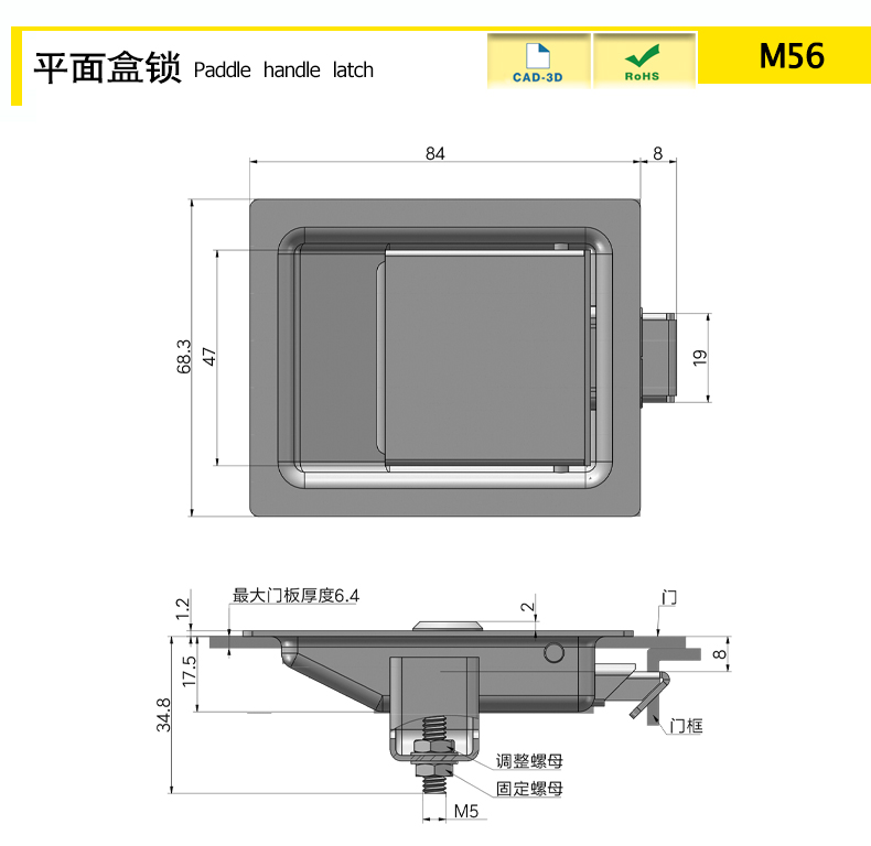 M56-2 | 平面盒鎖 | SPCC | 84 | 黑色 | 無(wú) | 電泳漆 | 1 | 下載 |